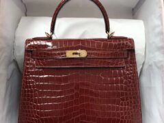 エルメスケリーバッグエルメスシャイニークロコダイルスキンケリーバッグKelly28CMCK31ハニーブラウンゴールドバックル