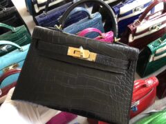 スポットエルメスミニケリー-2エルメスCK89ブラックマットクロコダイルレザーミニケリーバッグ2世代ゴールドバックル