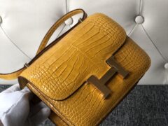 スポットエルメスコンスタンス18cmエルメス9Dアンバーイエローブライトクロコダイルスキンコンスタンスバッグゴールドバックル