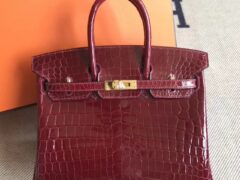 エルメスレディースバッグ新しいエルメスプラチナバッグBirkin25cmF5ブルゴーニュワインレッドシャイニークロコダイルレザーゴールドバックル