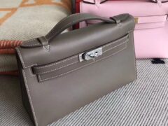 エルメスミニケリークラッチエルメストップスウィフトレザーミニケリーバッグC18エレファントグレー3Qパウダー付き