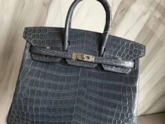 スポットエルメスプラチナバッグ価格エルメスバーキン25CMデニムブルーシャイニークロコダイルレザーシルバーバックル