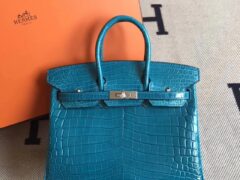 エルメスバーキン25CMエルメス7Wイズミールブルーシャイニークロコダイルレザープラチナバッグシルバーバックル