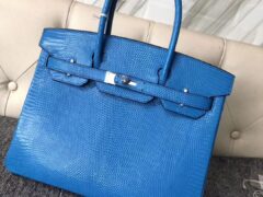 エルメスリザードレザーバッグカスタムエルメスバーキン30CM7Wイズミールブルーリザードレザーバーキンシルバーバックル