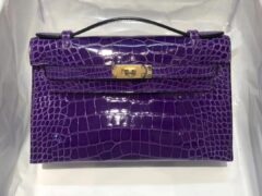エルメスミニケリークラッチエルメスシャイニークロコダイルレザーミニケリーバッグ5Lエクストリームパープルゴールドバックル