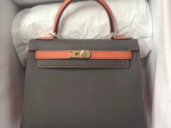 エルメスケリーバッグサイズエルメスケリー28CMピューターグレーとオレンジのエプソムレザーゴールドバックル