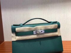スポットエルメスミニケリーハンドバッグエルメスオリジナルエプソムレザーミニケリーバッグZ6ピーコックグリーンシルバーバックル