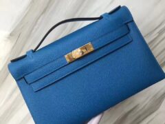スポットエルメスミニケリーポシェット22CMエルメスB3タンザニアブルーエプソムレザーミニケリーバッグゴールドバックル