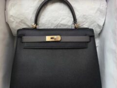 エルメスカラーブロックケリーバッグエルメスケリー28CM8Fピューターグレー/CK89ブラックエプソムレザーゴールドバックル