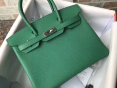 エルメスバーキン30CMエルメスU4ベルベットグリーンエプソムパームグレイン牛革プラチナバッグシルバーバックル