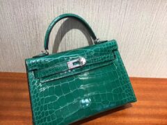 エルメスレディースバッグ価格エルメスミニケリー-26Qエメラルドグリーンシャイニークロコダイルレザーミニケリーバッグ2世代シルバーバックル