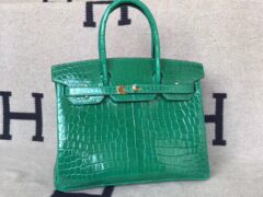 エルメスバーキンバッグエルメス6Qエメラルドグリーンシャイニークロコダイルレザーバーキン30cmゴールドバックル