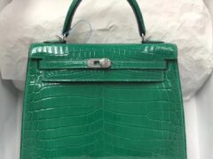 エルメスケリー25CMエルメスシャイニークロコダイルレザーアウターシームケリーバッグ6Qエメラルドグリーンゴールドバックル
