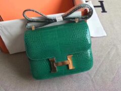 エルメスエルメススチュワーデスバッグサイズ6Qエメラルドグリーンシャイニークロコダイルスキンコンスタンスバッグ19cm