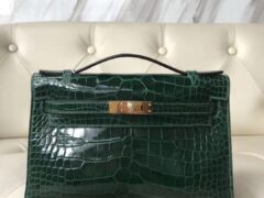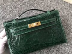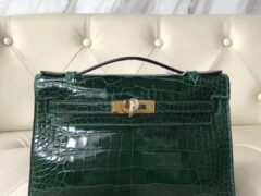 エルメスMinikelly22CMCK67エメラルドシャイニークロコダイルレザークラッチ