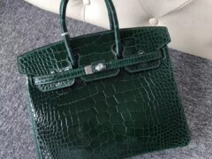 スポットエルメスバッグ公式サイトエルメスシャイニークロコダイルレザーBirkin25プラチナバッグCK67エメラルドシルバーバックル