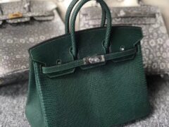 スポットエルメスバーキンバッグ25CMエルメスシャイニートカゲスキンプラチナバッグCK67エメラルドシルバーバックル