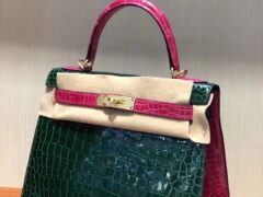エルメスケリー28CMエルメスCK67エメラルド/J5アラビアンナイトピンクパープルシャイニークロコダイルスキンケリーバッグ