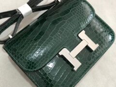 エルメスコンスタンス18cmCK67エメラルドシャイニークロコダイルレザーシルバーバックル
