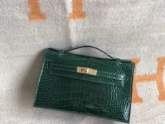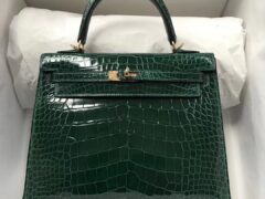 エルメスミニケリー22cmエルメスCK67エメラルドシャイニークロコダイルレザーミニケリーバッグゴールドバックル