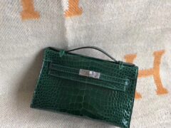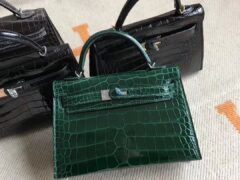 エルメスMinikelly19CMエルメスCK67エメラルドシャイニークロコダイルレザーミニケリーバッグ2世代シルバーバックル