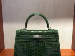 エルメスケリー25CMエルメスCK67エメラルドシャイニーツーポイントクロコダイルスキンケリーバッグシルバーバックル
