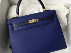 エルメスケリーウィメンズバッグエルメスケリー25CM7Tエレクトリックブルー/ダークブルーカラーブロックケリーゴールドバックル
