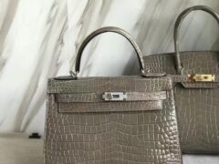 スポットエルメスケリーバッグ価格エルメスケリー25CMCK81タートルドーブグレー光沢のあるクロコダイルレザーゴールドバックル