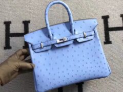 エルメスバッグ公式サイトエルメスピンクブルー輸入南アフリカダチョウレザープラチナバッグBirkin25CMシルバーバックル