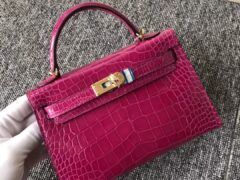 エルメスミニケリー2世代ハンドバッグエルメスシャイニークロコダイルレザー2世代ミニケリーバッグJ5アラビアンナイトピンクパープルゴールドバックル