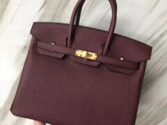 スポットエルメスバーキン25CMエルメスCK37ゴールドブラウントーゴ牛革プラチナバッグゴールドバックル