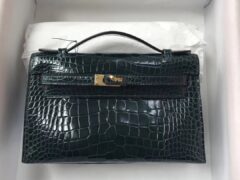 広州白雲皮具城エルメスエルメス1Pダックブルーブライトクロコダイルレザーミニケリーバッグミニケリークラッチゴールドバックル