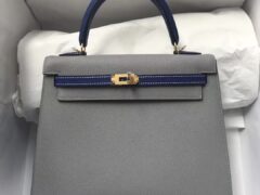 エルメスケリーバッグエルメス4Zシーガルグレー、7Tエレクトロオプティカルブルーカラーマッチングケリーバッグ25CMゴールドバックル