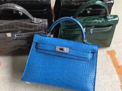 エルメスミニケリー2世代エルメス7Tエレクトロオプティカルブルーマットクロコダイルレザーミニケリーバッグシルバーバックル