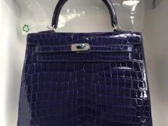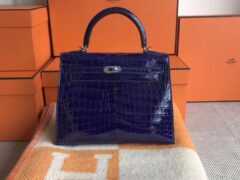 エルメスケリー25CMエルメス7Tエレクトロオプティカルブルーシャイニークロコダイルスキンケリーバッグシルバーバックル