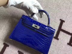 エルメスミニケリーハンドバッグエルメスシャイニークロコダイルレザーミニケリーバッグ2世代7Tエレクトロオプティックブルーゴールドバックル