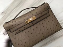 スポットエルメスミニケリーディナーバッグエルメス輸入KKダチョウレザーミニケリーバッグCK18エレファントグレーゴールドバックル