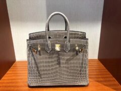 スポットエルメスクロコダイルレザーレディースバッグエルメスオリジナル光沢クロコダイルレザープラチナバッグBirkin25CMCK18エレファントグレーゴールドバックル
