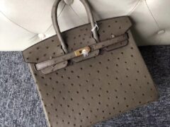 スポットエルメスオーストリッチレザーレディースバッグエルメス輸入KKオーストリッチレザープラチナバッグ25CMCK18エレファントグレーゴールドバックル