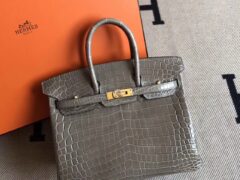 ファクトリーダイレクトエルメスバーキンバッグC18エレファントグレーシャイニークロコダイルレザーバーキン25cmゴールドバックル