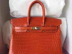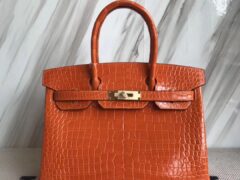エルメスバーキン30CM8Vポピーオレンジシャイニークロコダイルレザーゴールドバックル