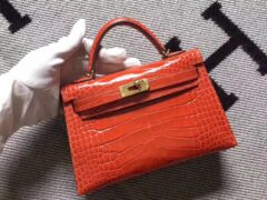 エルメスバッグ公式サイトオレンジ光沢反転Vベイクロコダイルレザーミニケリーバッグミニケリー22cm