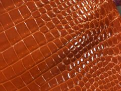 エルメスバッグカスタムエルメスオレンジ光沢のあるアメリカンアリゲーターレザーは小さなバッグに適しています