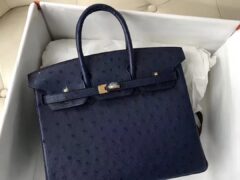 エルメスバーキン25CMエルメスダークブルーオリジナルKKオーストリッチレザープラチナバックル