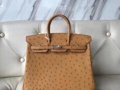 エルメスバーキン25CMエルメスマスタードイエロートップKKオーストリッチレザープラチナバッグシルバーバックル