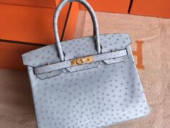 エルメスニューウィメンズバッグエルメスバーキン30cm8UグレイシャーブルーKKオーストリッチレザープラチナバックル
