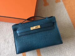 エルメスの新しいクラッチバッグエルメスMinikelly22CM7Fピーコックブルーマットスクエアクロコダイルレザーゴールドバックル
