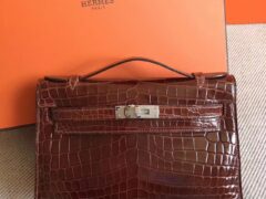 ハニーブラウンシャイニークロコダイルレザーのエルメスミニケリーウィメンズクラッチ