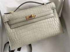 エルメスミニケリークラッチエルメスマットナイルクロコダイルレザーミニケリーバッグ8Lクリームプラチナバックル