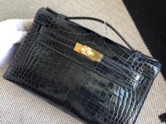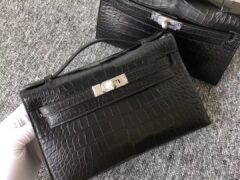 エルメスミニケリーバッグエルメスマットクロコダイルレザーミニケリークラッチ22CMCK89ブラックシルバーバックル